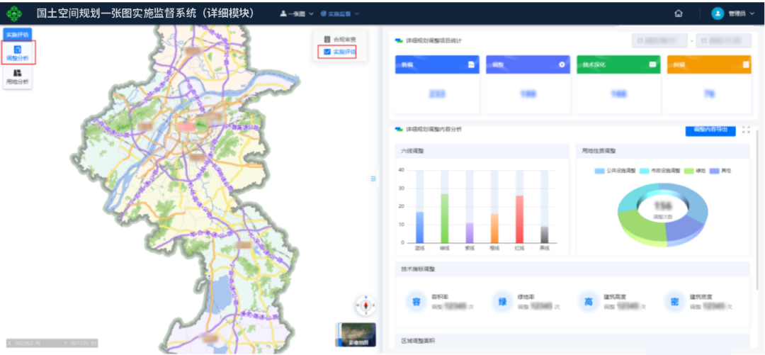 系统对控规更正前后各项计划的变化情况进行对比统计分析,多维度评估对产业、大家管事配套、城市风貌、历史文化等方面影响,为空间布局优化提供依据。